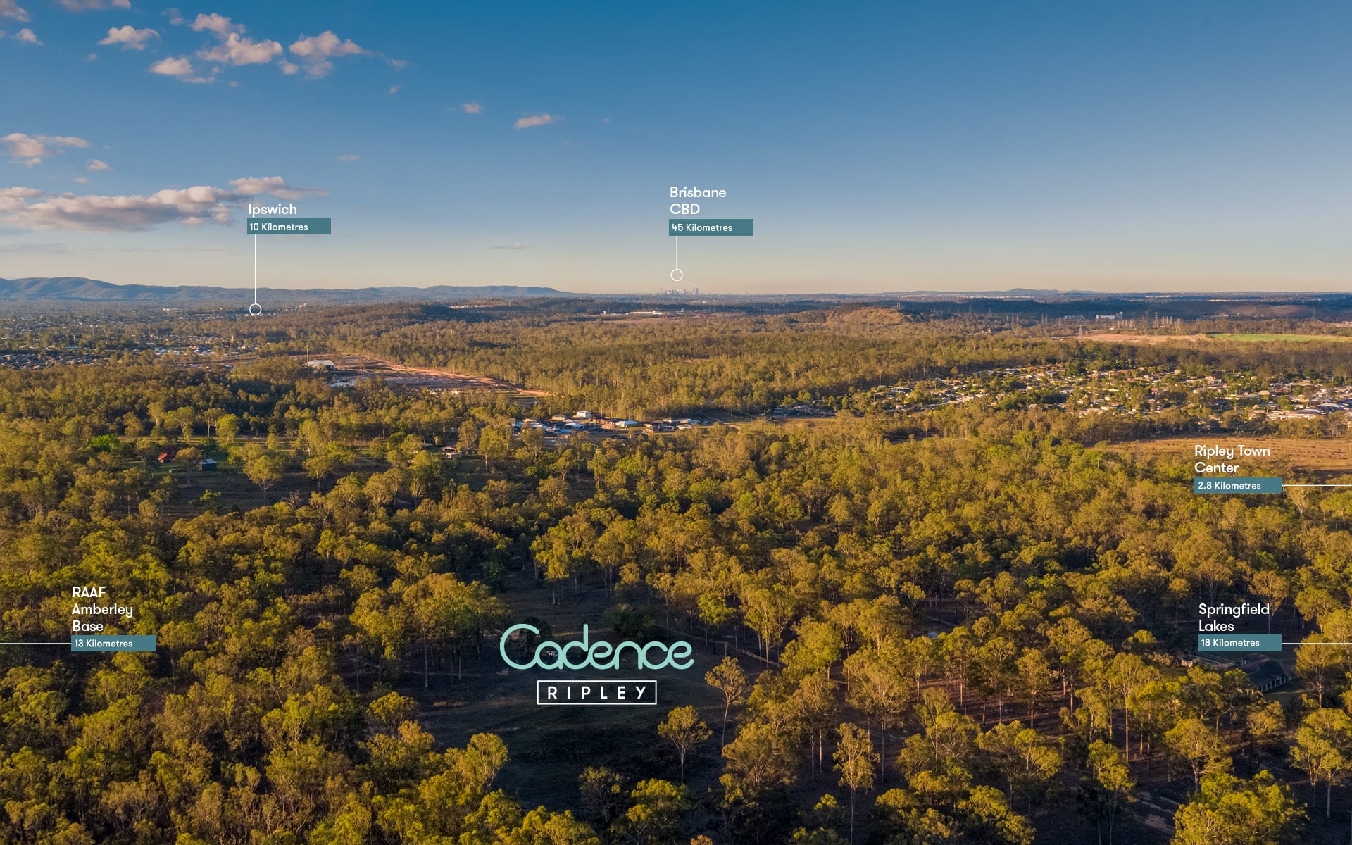 Cadence is tucked into the Ripley Valley, less than 10km south of Ipswich and 3km west of Ripley Town Centre. The community is well serviced by major roads to speed you to work, to Ipswich, Springfield, Brisbane and to all points between. Schools, shopping centres and services are all within easy reach from here.