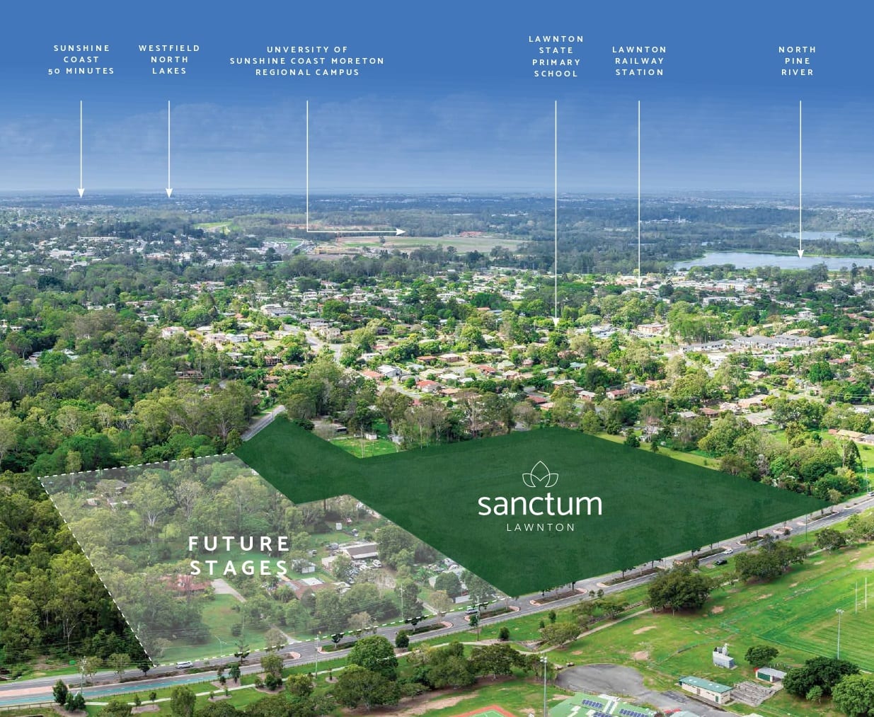 Sanctum is a boutique community located in Lawnton, just 25km north of Brisbane CBD. Situated close to shops, schools, parks and sporting facilities, Sanctum is convenient for home owners from all walks of life, from young couples and families through to downsizing baby boomers. Lawnton offers great future upside potential with ideal access to all levels of education, including the newly developed Sunshine Coast University Moreton Campus as well as fast rail services to the Brisbane CBD.
